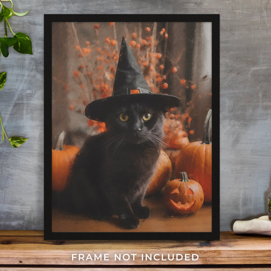 Black Cat Witch Halloween Wall Art