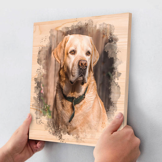 Pet Portrait on Wood Watercolor Style Dog Wall Art, Engraved Personalized Portrait from Photo as a Cat Lover Gift, Custom Photo on Wood