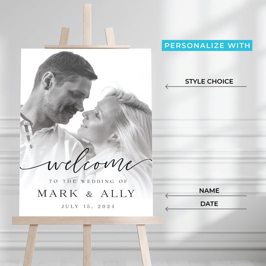 Wedding Welcome Sign with Photo, Rehearsal Sign, Wedding Reception Sign, Printed Welcome Sign, Wedding Picture Sign, Night Before Sign