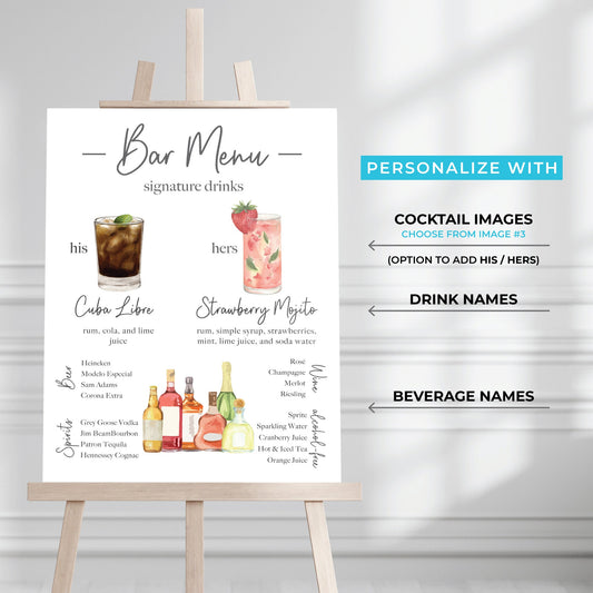 Signature Drink Sign Printed, Minimalist Bar Menu Template, Printed Bar Menu, Modern Drink Menu, Bride and Groom Drinks, Wedding Sign