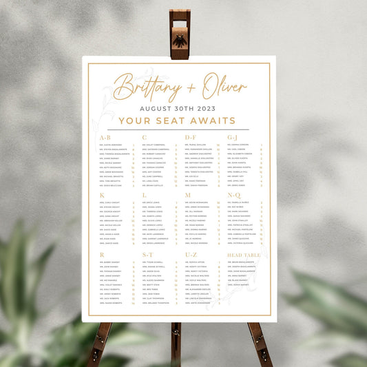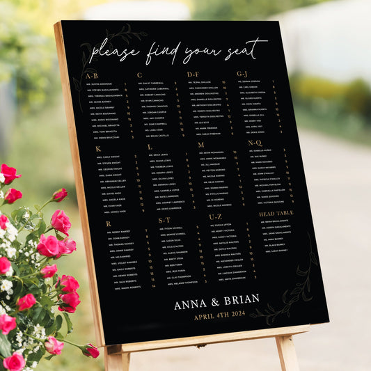 Wedding Seating Chart, Alphabetical Order, Personalized Wedding Welcome Sign, Party Decorations, Reception Poster, Rehearsal Sign