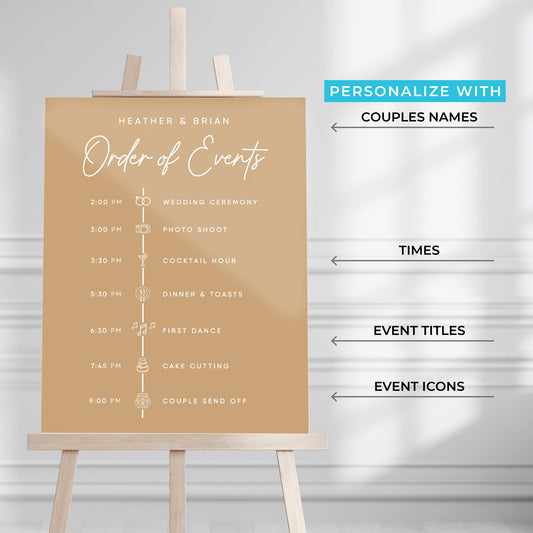 Wedding Order of Events Sign, Printed Wedding Welcome Sign, Party Decorations, Reception Poster, Wedding Decor, Order of the Day