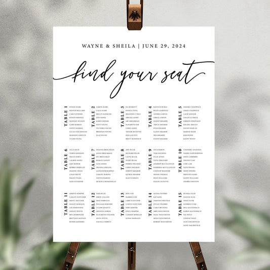 Wedding Seating Chart, Personalized Wedding Welcome Sign, Party Decorations, Reception Poster, Wedding Decor, Rehearsal Sign, Find Your Seat