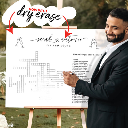 Sip and Solve Wedding Sign, Printed Custom Extra Large Wedding Crossword Puzzle, Boho Wedding Game Crosswords, Wedding Entertainment